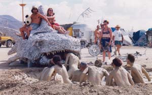 Everyone should attend this Labor Day gathering in the desert at least once. My first was in 1994, there were only 1500 people there back then (before they called us Burners), and the silver shark car was a big hit. The convention of the subcultures....a place to refill your creative reservoir. After about fourteen of them, I am hoping that they will move it to someplace less dusty....