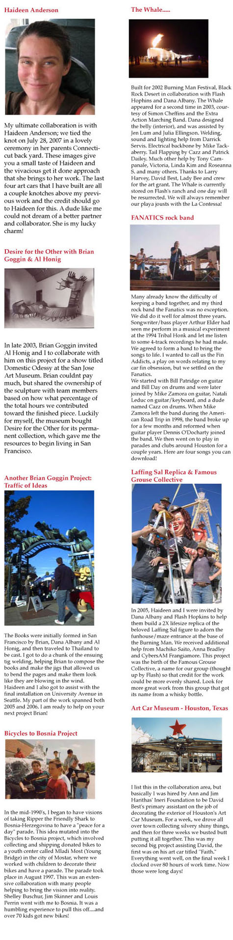 Sometimes I like to zone-out and work all by myself, but my most rewarding and best work happens when I reach out and collaborate with others. There is a scale of project, a size of an idea, that is just too big for one person to accomplish alone. I love to help others with their big ideas and have certainly received a little help from my friends at times. Brian Goggin (www.metaphorm.org) has invited me to work on a couple great projects with him --- a big honor!